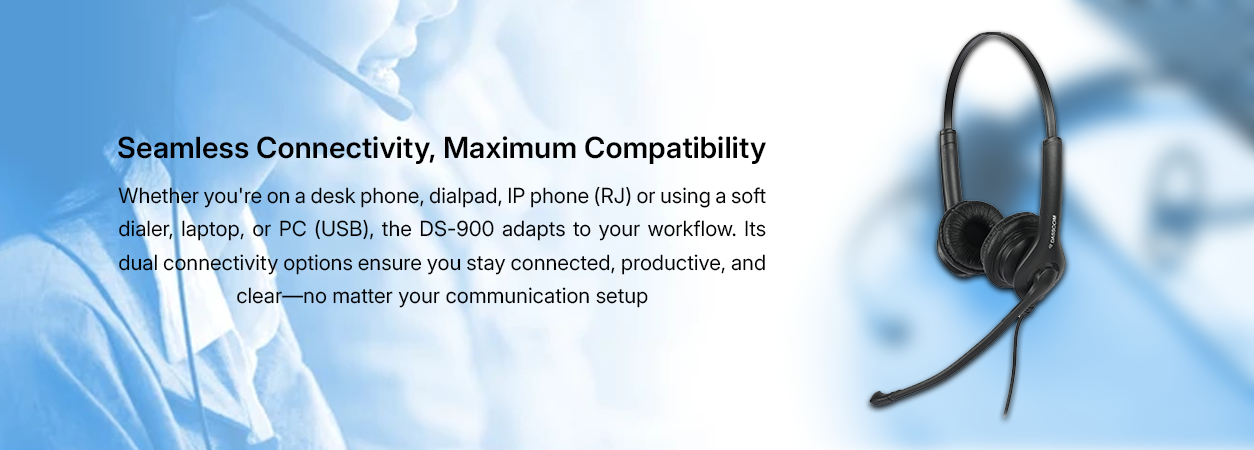 The Dasscom DS-900 RJ, part of the premium Divine Series, is a high-performance communication headset crafted for modern contact centers and professional environments. Engineered for exceptional voice clarity, it features a noise-reduction microphone that filters out background noise, ensuring clear conversations even in bustling workplaces. Designed with user comfort in mind, it includes ultra-soft leatherette ear cushions and a lightweight, adjustable headband for fatigue-free all-day wear. With reliable RJ connectivity, the DS-900 RJ seamlessly integrates with most desk phones. Combining durability, comfort, and acoustic precision, this Divine Series headset elevates everyday communication to a professional standard.