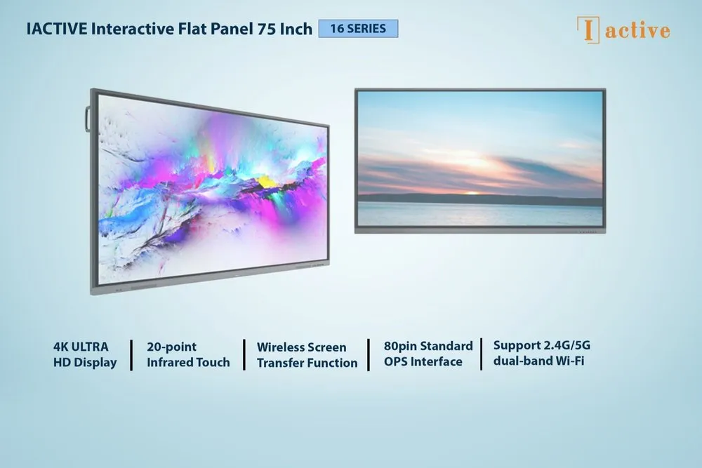 The IActive I Series Interactive Flat Panel (IFP) is designed to transform classrooms, corporate meetings, and training sessions into engaging, technology-driven experiences. With AI-powered features, 4K Ultra HD resolution, and dual operating systems, this series ensures seamless interaction and enhanced productivity.