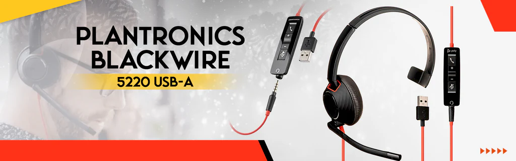Plantronics Black wire C5220 is a versatile wired headset offering high quality sound, noise canceling microphone and both USB and 3.5 mm connectivity for clear communication and comfort throughout the day.